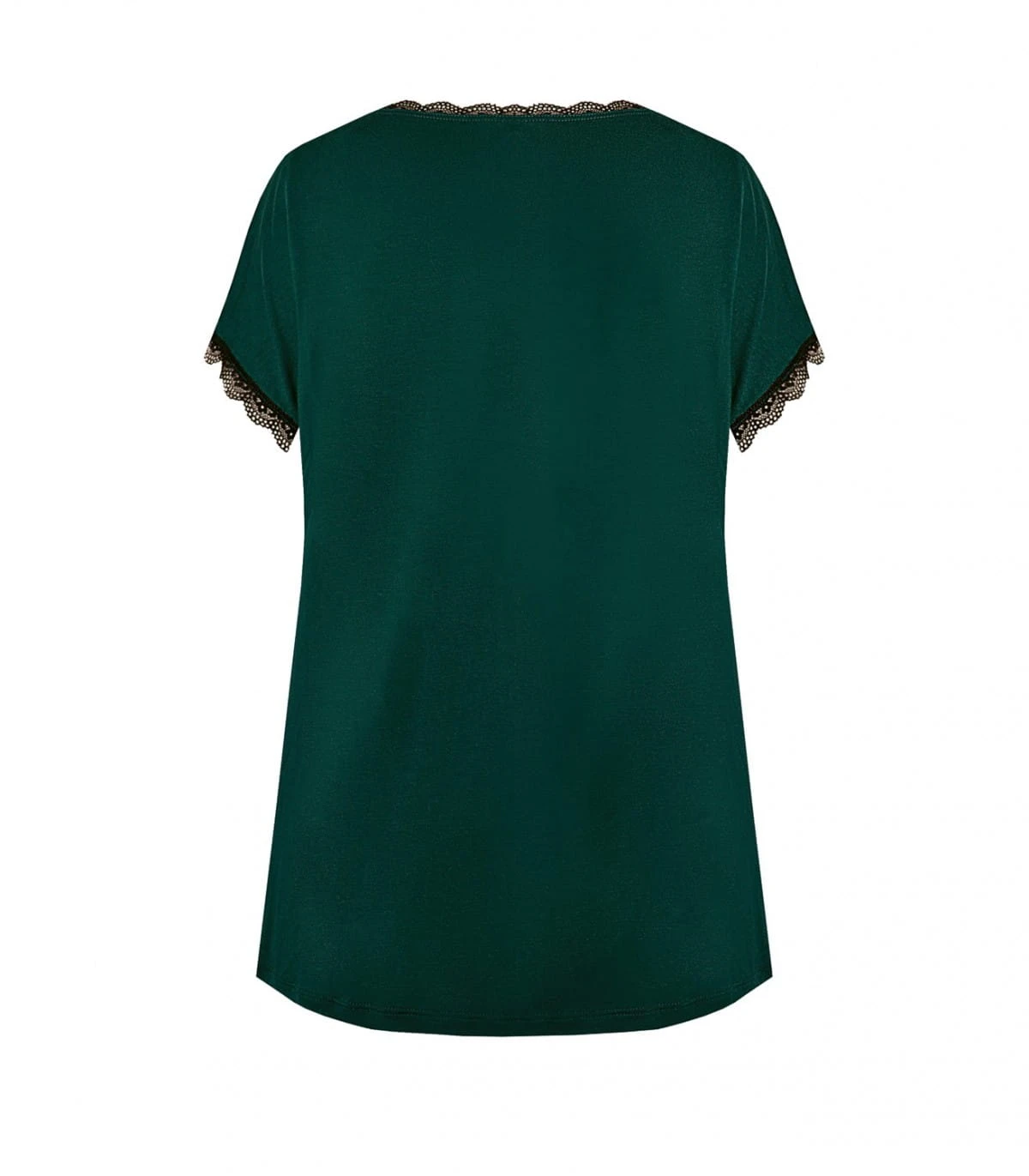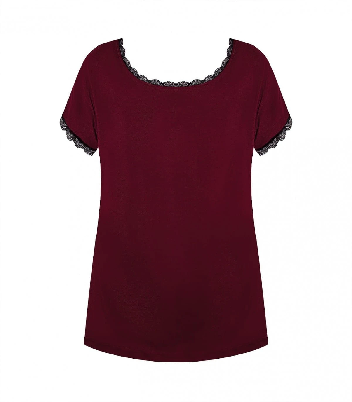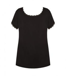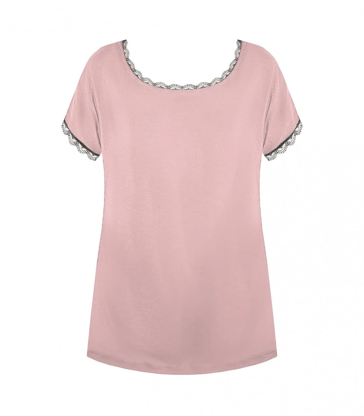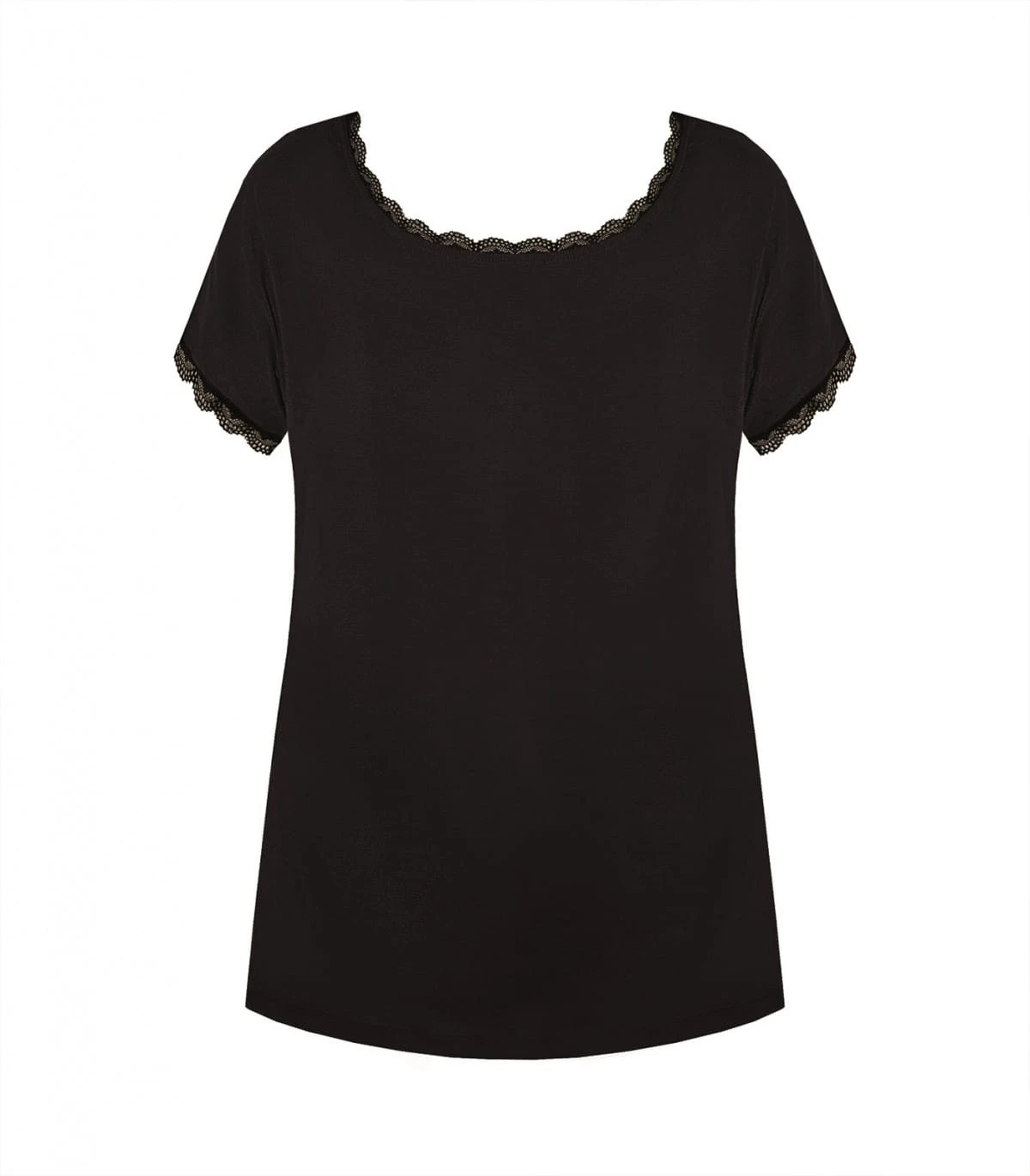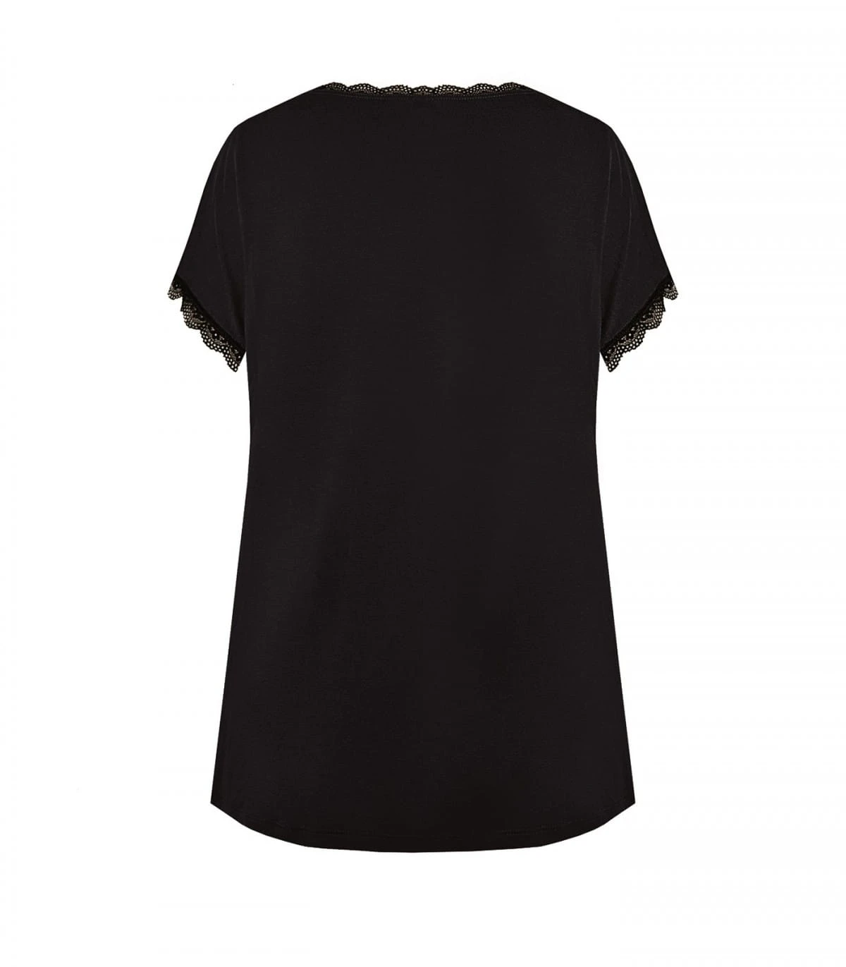 Bluzka/koszulka damska - z delikatnej i miękkiej wiskozy - rękaw krótki typu "motylek" - dekolt okrągły - rękawki i dekolt obszyte koronką - gładka Skład: 70% wiskoza, 14% poliamid, 8% elastan, 8% inne .