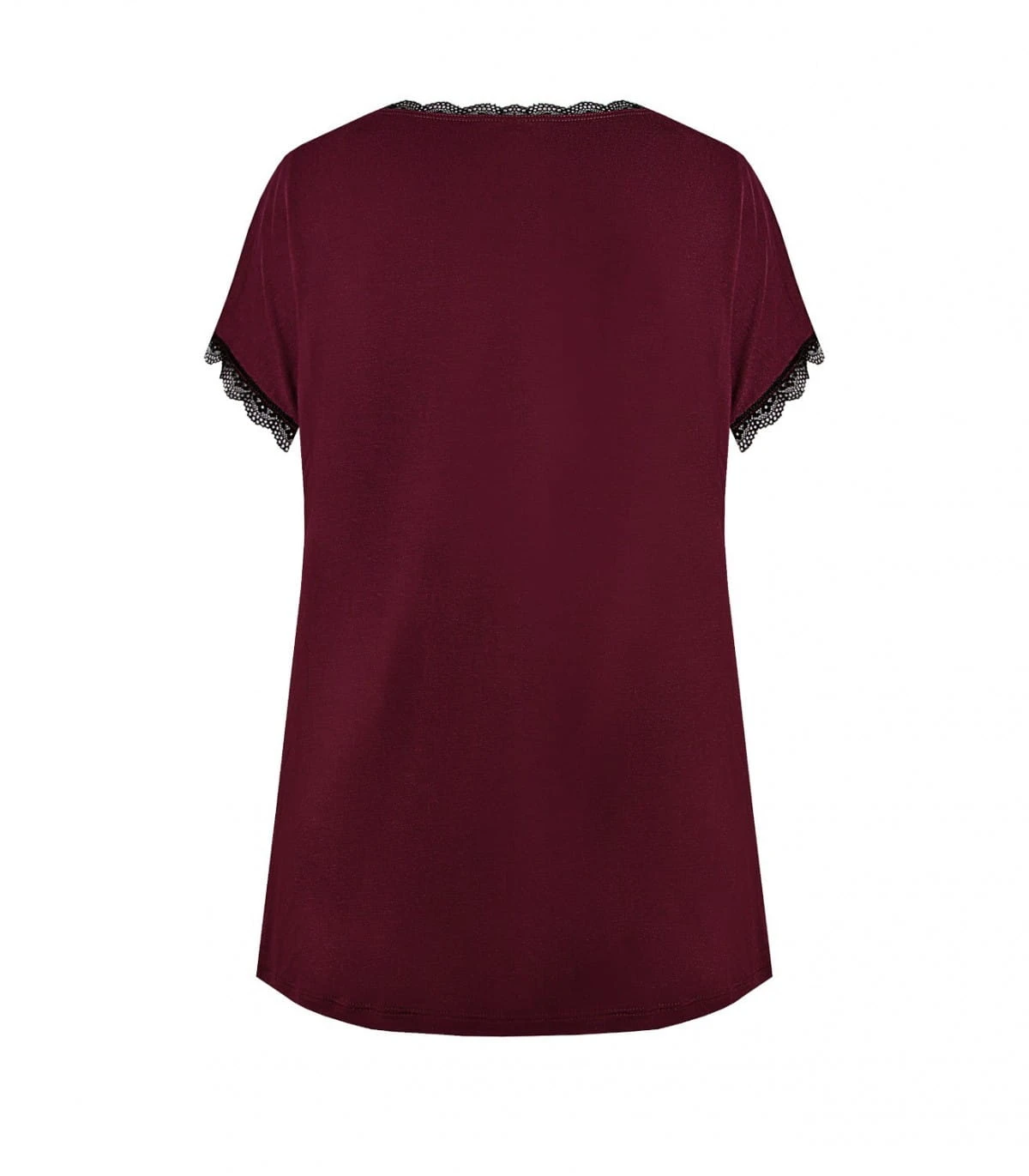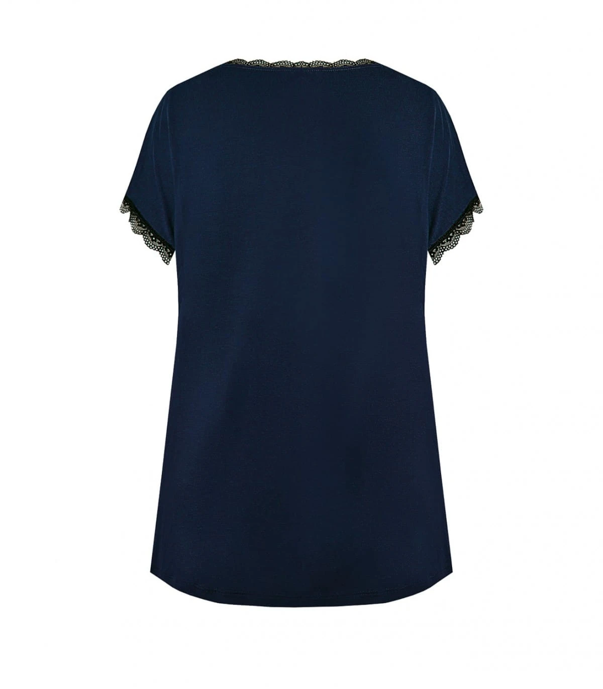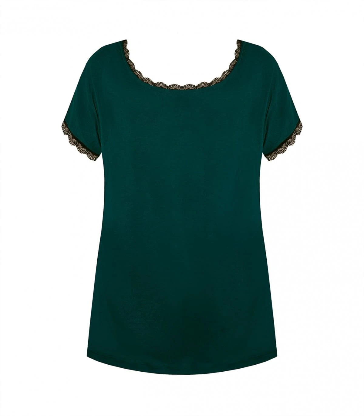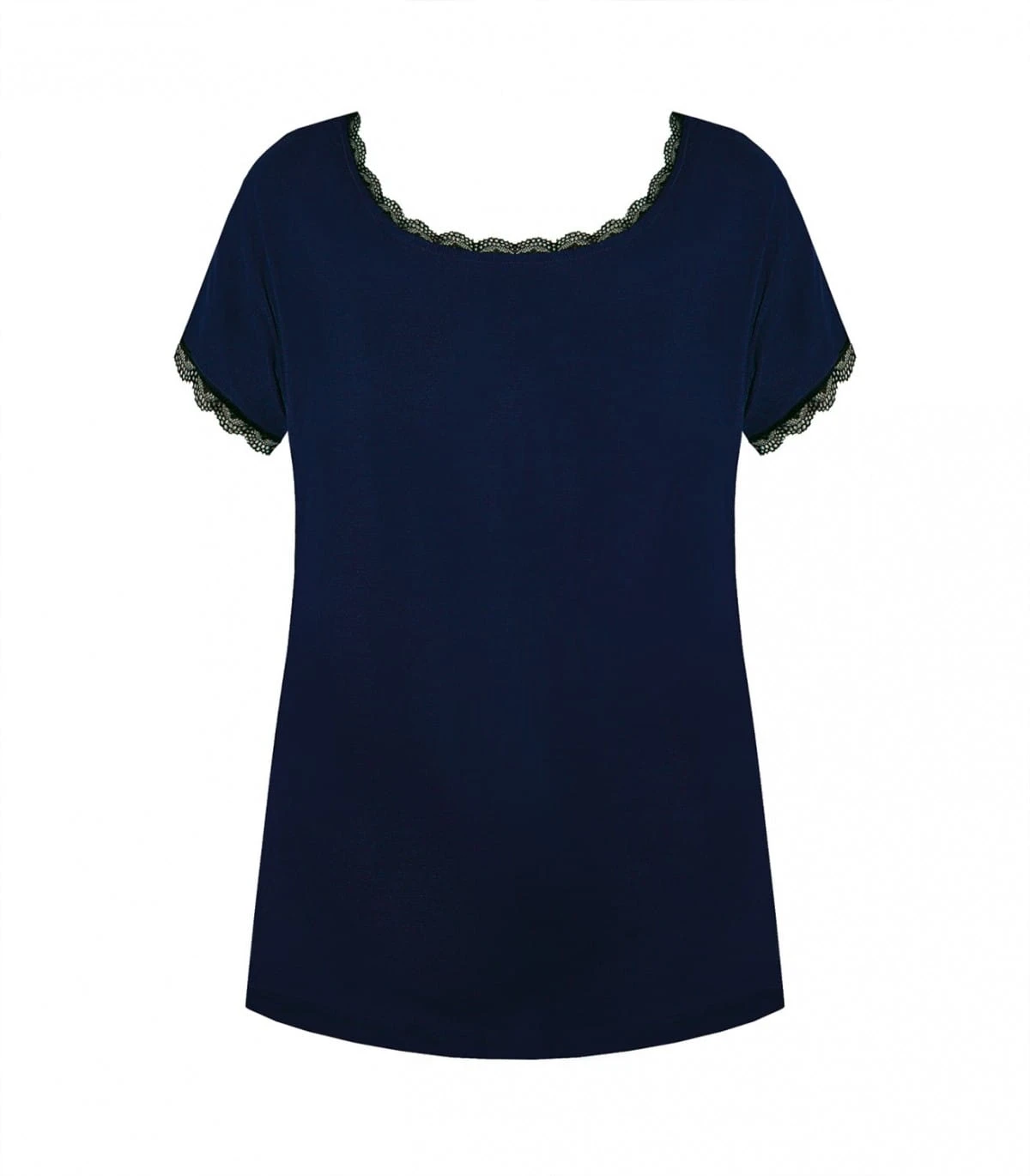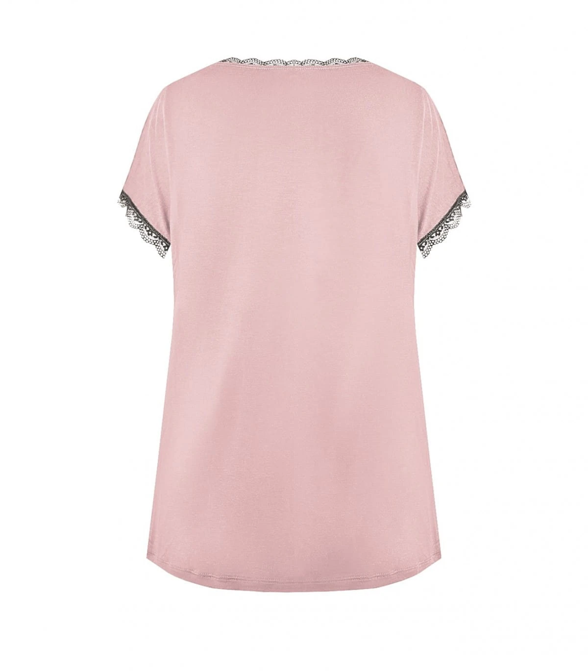 Bluzka/koszulka damska - z delikatnej i miękkiej wiskozy - rękaw krótki typu "motylek" - dekolt okrągły - rękawki i dekolt obszyte koronką - gładka Skład: 70% wiskoza, 14% poliamid, 8% elastan, 8% inne .