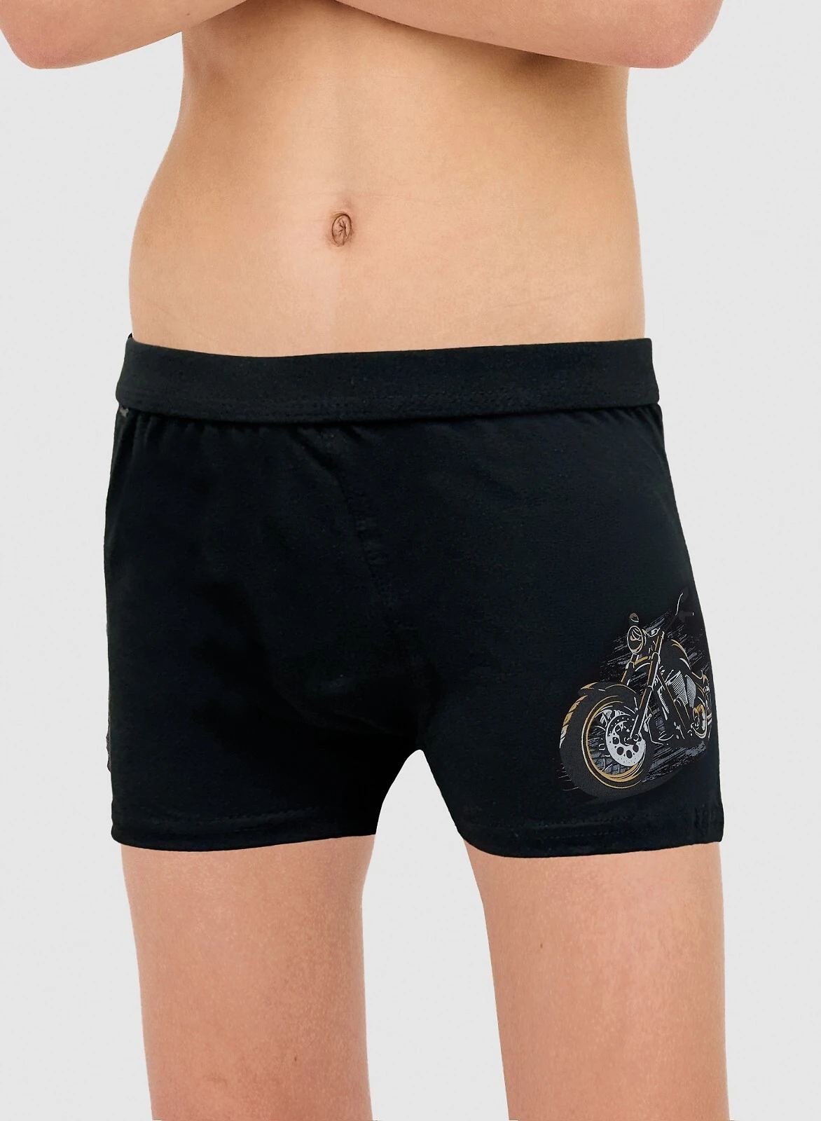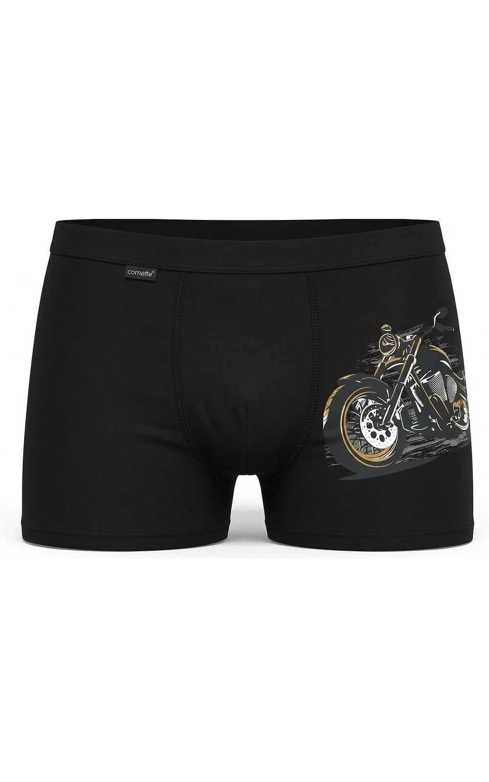 Bokserki chłopięce- wysokiej jakości bawełna- w pasie guma obszyta bawełną- ma jednej z nogawek nadruk z motorem- bezuciskowe wykończenie nogawek- doskonale przylegają do ciała Skład: 95% bawełna, 5% elastanAdres producenta: CORNETTE Underwear SP. Z O.