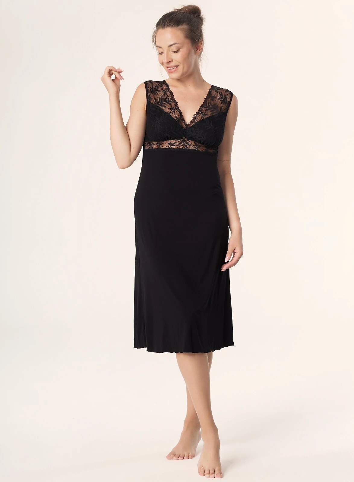 Efektowna koszulka damska- z wysokiej jakości wiskozy- dekolt, plecy i linia pod biustem z ażurowej koronki- miseczki podszyte materiałem- u dołu, z jednej strony rozcięcie- długość do łydki- pakowana w pudełko Skład: 72% wiskoza, 20% poliamid, 8% elastan Adres producenta: Mefemi 21-400 Czerśl Czerśl 4 NIP: 825-217-23-54 E-MAIL: mefemi@mefemi.plInformacje o bezpieczeństwie producenta: 1.
