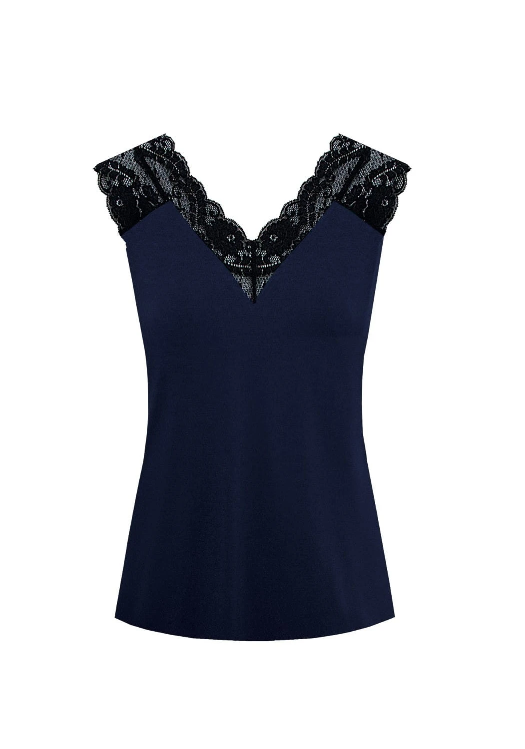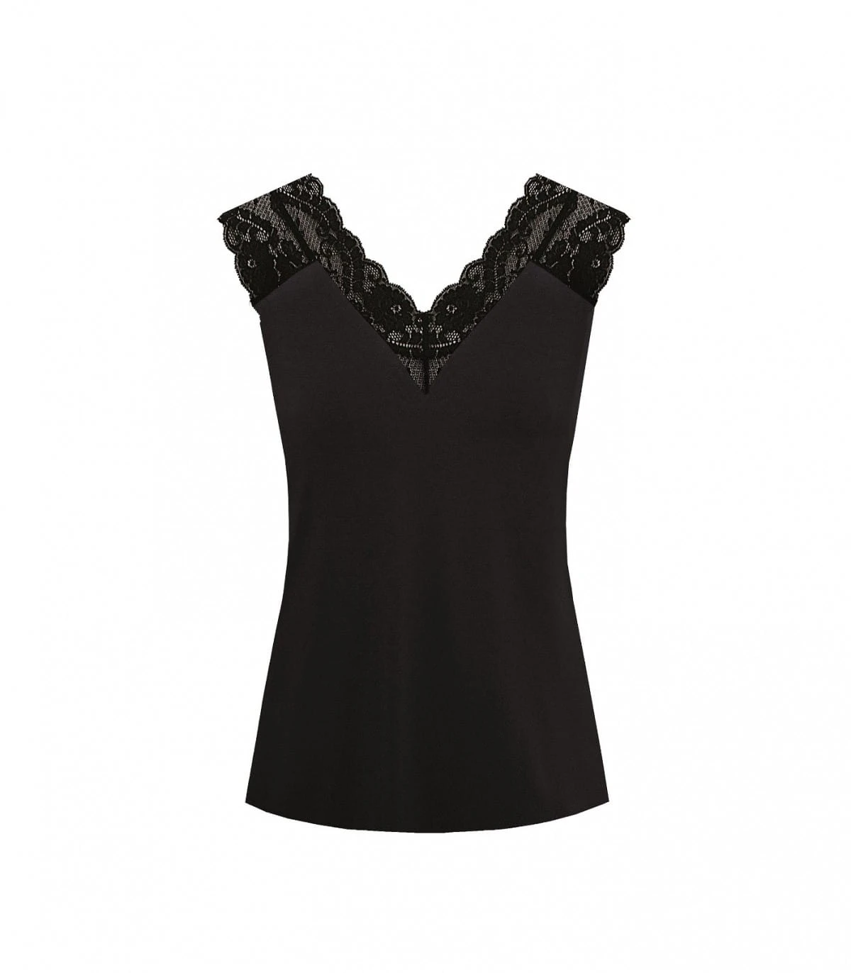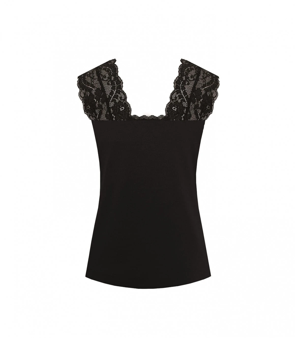 Bluzka/koszulka damska- z miękkiej i delikatnej wiskozy- na szerszym, koronkowym ramiączku- dekolt w kształcie litery "V" Skład: 70% wiskoza, 14% poliamid, 8% elastan, 8% inneAdres producenta: NIPPLEX SP. Z O.
