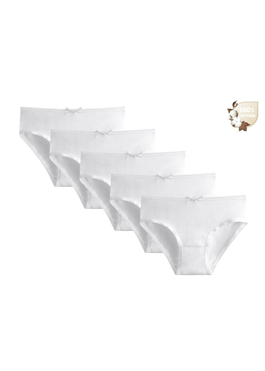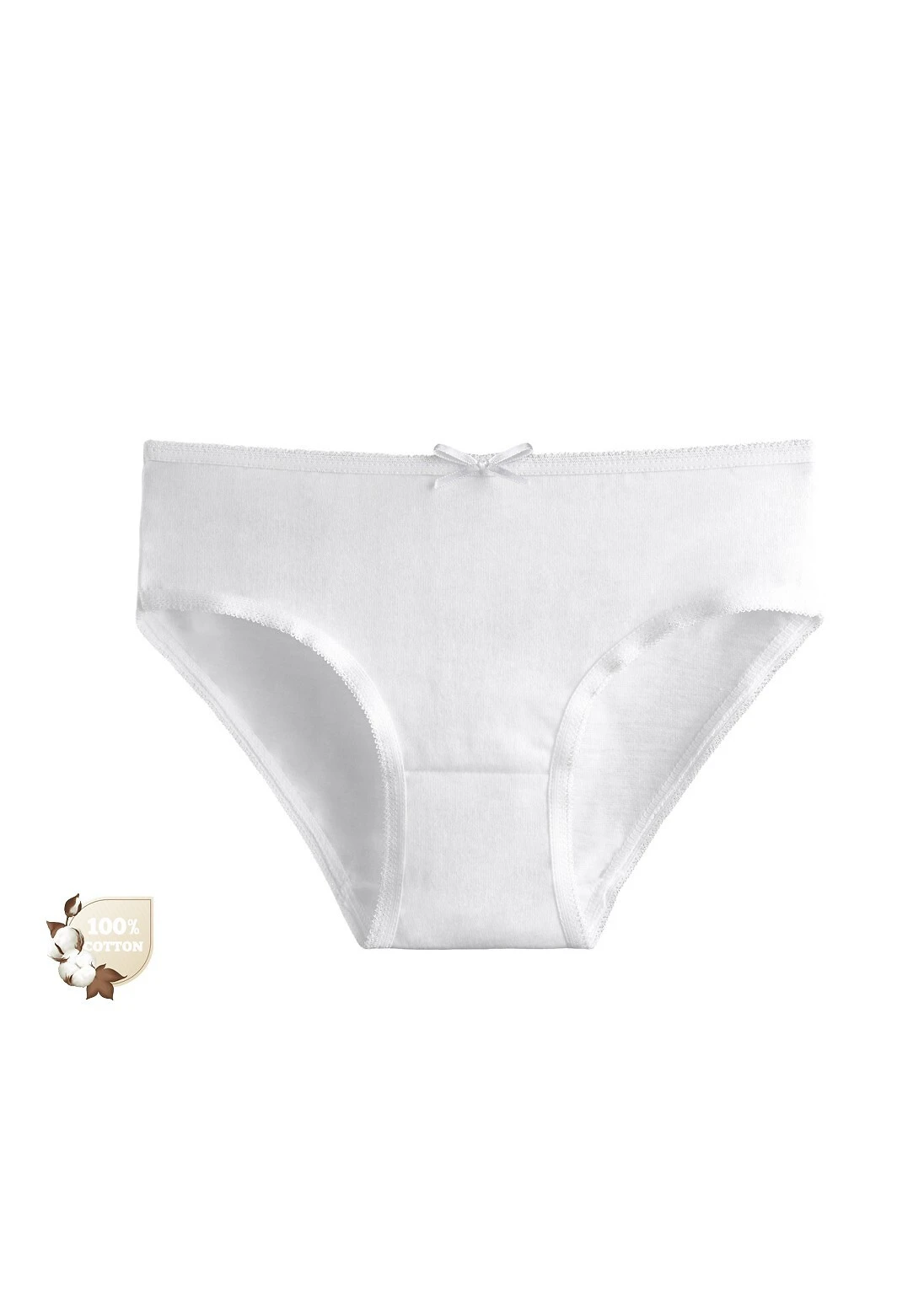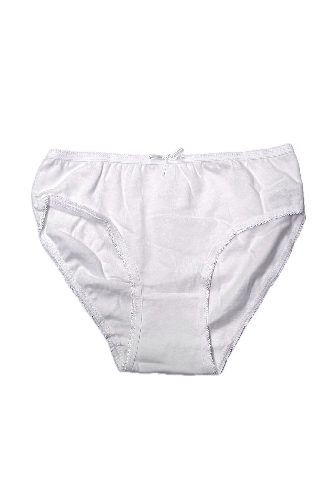 Bawełniane figi dziewczęce- miękka, biała bawełna- w pasie wygodna gumka z ozdobną satynową kokardką- pakowane po trzy sztuki w foliowy woreczek Skład: 100% bawełnaAdres producenta: Donella SP.Z O.