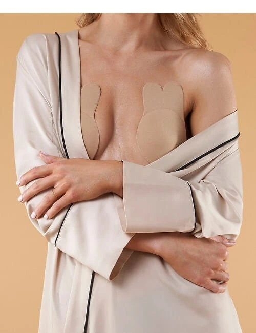 Lekkie, samoprzylepne osłonki, które pozwalają osłonić brodawki i silnie unieść biust. Stanowią innowacyjne połączenie osłonek i plastrów unoszących piersi. Dzięki wyjątkowemu kształtowi można nimi lekko modelować biust. Niezwykle przydatne w wielu sytuacjach, zapewniają komfort, dyskrecję, ochronę i swobodę ruchów. Osłonki pozwalają na włożenie okrywającej ramiona czy plecy kreacji. Są niezastąpione latem - pod obcisłymi czy prześwitującymi strojami. Wykonane z oddychającego, bezpiecznego dla skóry materiału.