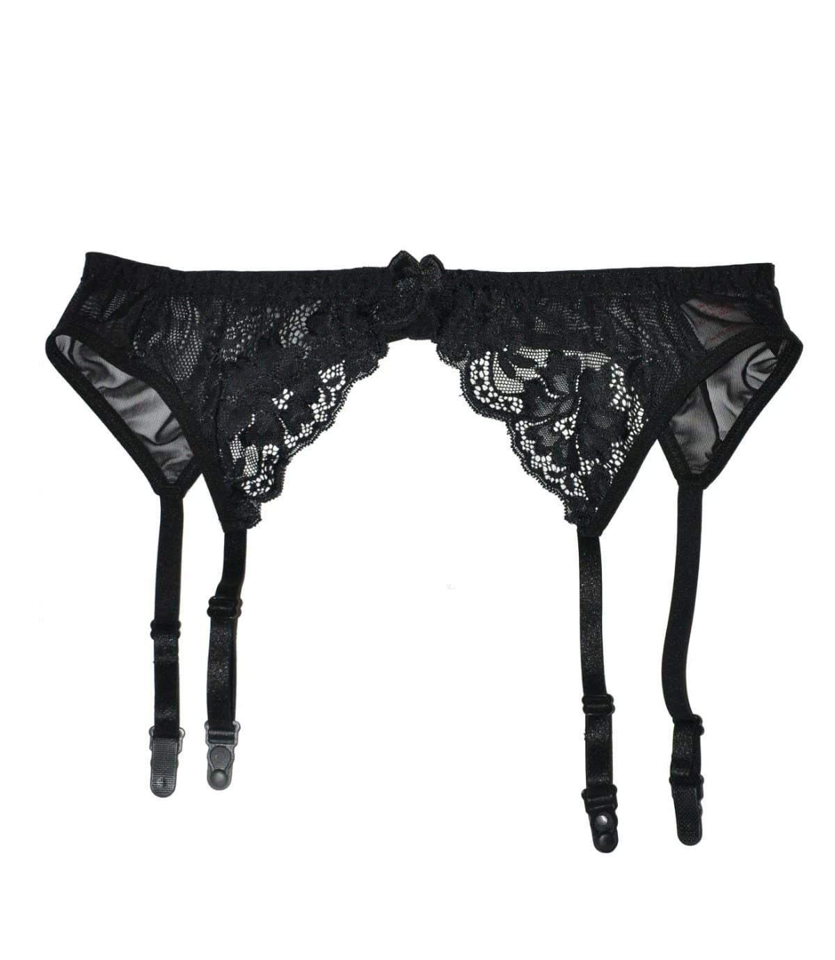 Pas do pończoch z koronki z dwustopniowym zapięciem na haftki - zapięcia do pończoch z regulacją długości..