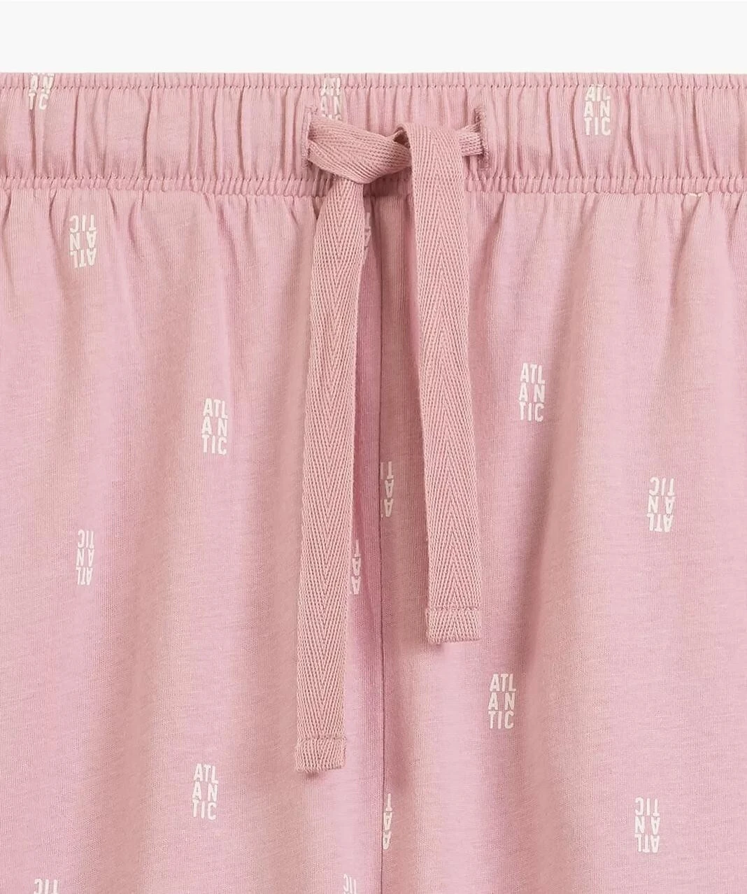 Piżama damska- wysokiej jakości miękka bawełna- koszulka jednolita z krótkim rękawem- na piersi mały napis ATLANTIC- spodnie wzorzyste o długości 3/4- w pasie wiązany sznurek do regulacji obwodu - pakowana w foliowy worek Skład: 100% bawełna Adres producenta: Via Moda Spółka z Ograniczoną Odpowiedzialnością 00-640 Warszawa Mokotowska 7 lok.10 NIP: 525-261-44-19 E-MAIL: atlantic.