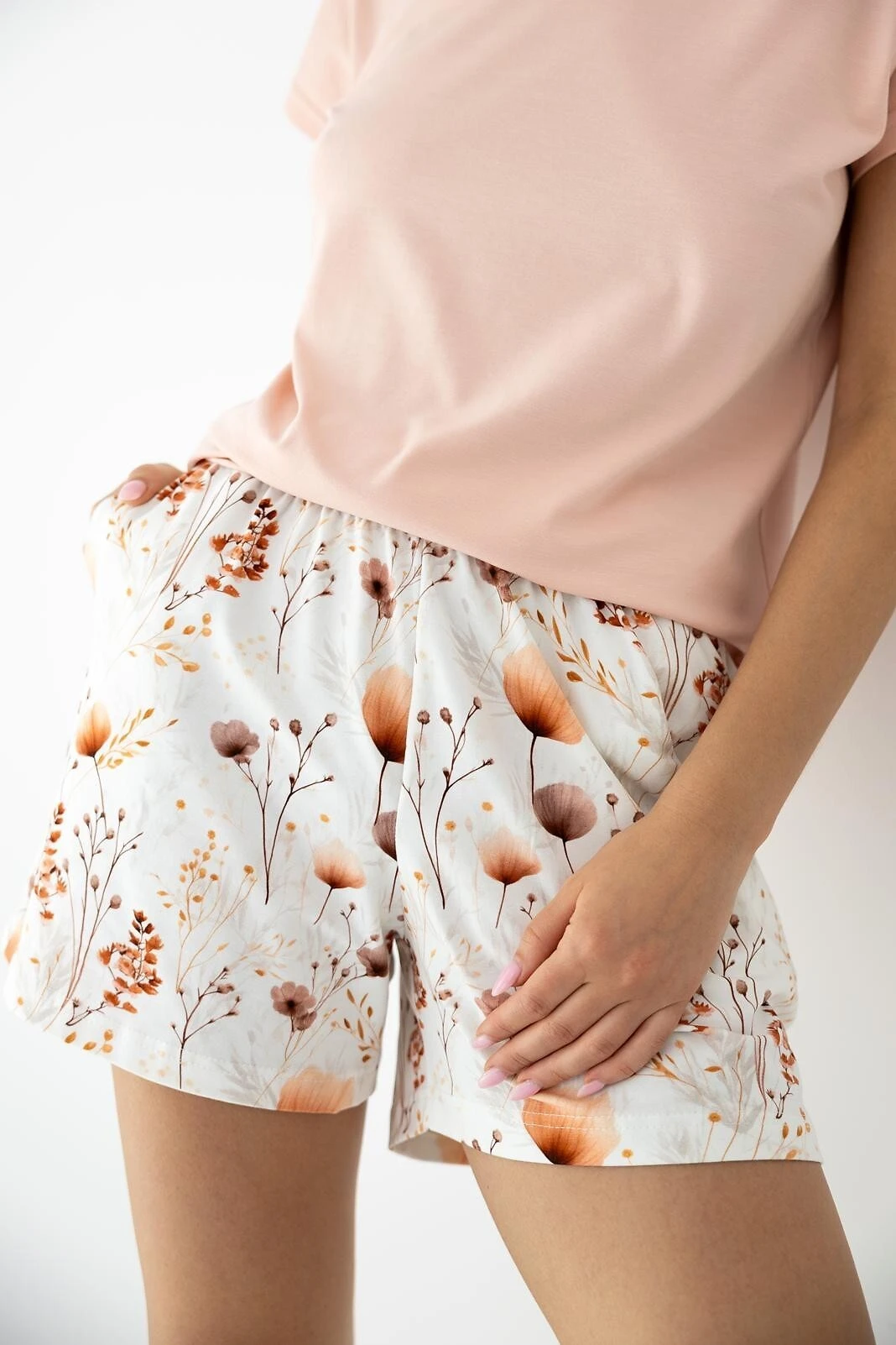 - w komplecie krótkie szorty o kwiatowym motywie