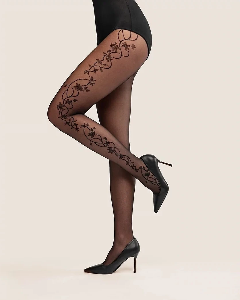 - niewidoczne wzmocnienie na palcach sprawia, że cienkie rajstopy z kwiatowym wzorem można dopasować do dowolnego obuwia