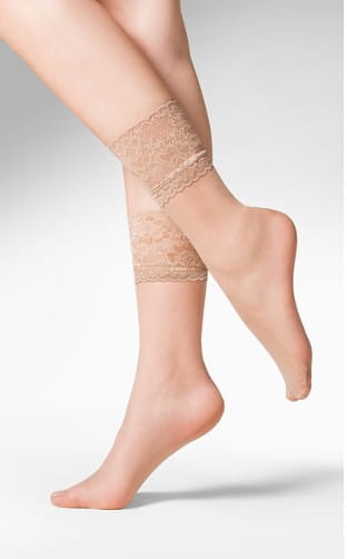 Ekskluzywna skarpetki wykonane z włókna Lycra oplecionego poliamidem. Ściągacz zakończony efektowną koronką.