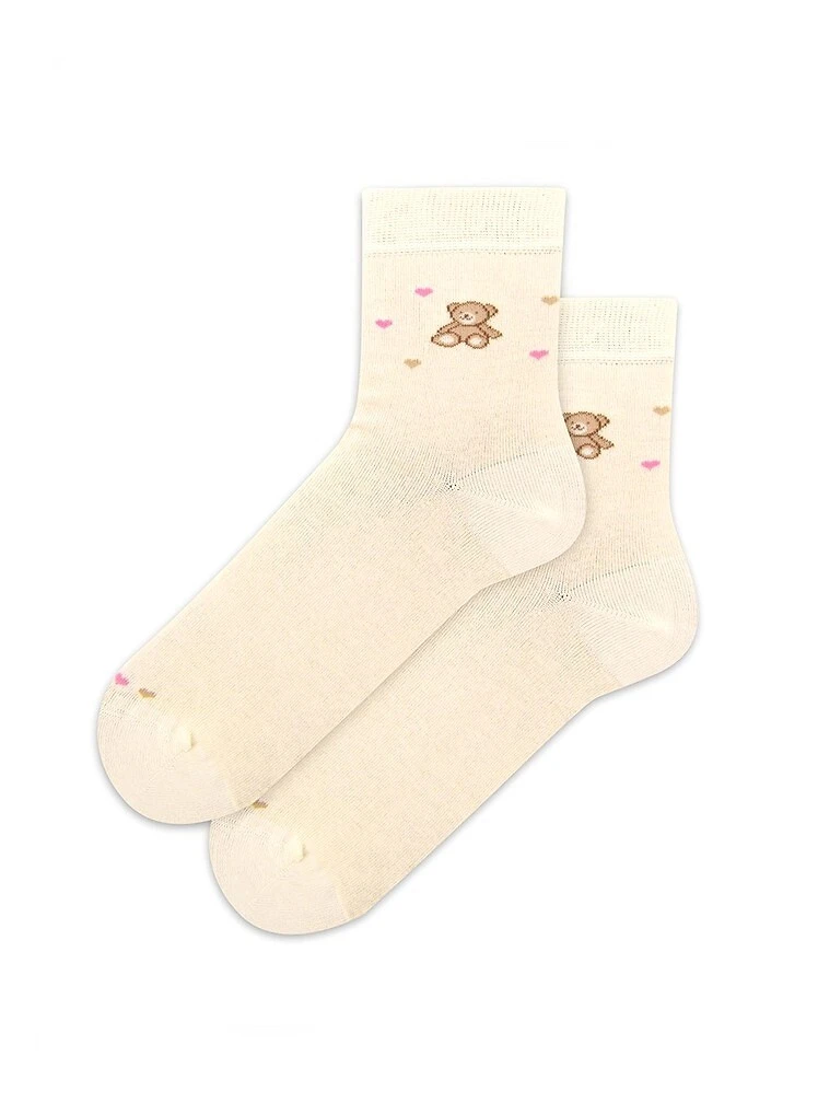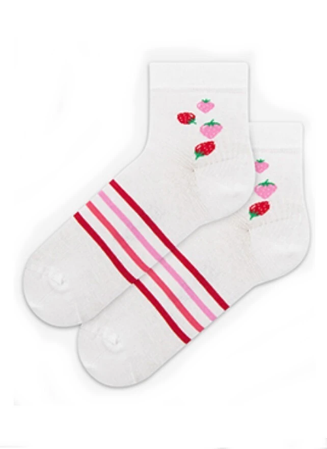 Wzorzyste skarpetki dziewczęce- wysokiej jakości cienka bawełna- z dodatkiem włókien elastycznych- wygodny, nieuciskający ściągacz Skład uzależniony od wzoru: 81%-84% bawełna, 13-16% poliamid, 2-3% elastan Adres producenta: FERAX SP. Z O.