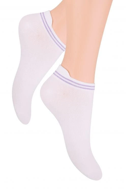 Stopki damskie z języczkiem na cholewce. Wykonane z bawełny 54% i poliamidu 42% z dodatkiem elastanu.